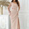 Olśniewająca sukienka, idealna na wyjątkowe okazje. Krótka sukienka z piórkami na jedno ramię łączy nowoczesny design z wyrafinowaną ekstrawagancją. Z tyłu zapinana na suwak błyskawiczny.