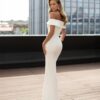 Oto nasza elegancka sukienka, która łączy nowoczesny styl z klasyczną elegancją. Doskonale podkreśla urodę każdej kobiety. Sukienka ma dopasowany fason z odkrytymi ramionami i zmysłowym dekoltem, co nadaje jej wyjątkowego charakteru. Efektowne rozcięcie na nogawce zapewnia swobodę ruchów i odrobinę pikanterii. Wykonana z lekkiego, elastycznego materiału, sukienka doskonale układa się na ciele, gwarantując komfort noszenia przez całą noc. Idealna na wyjątkowe okazje, takie jak wesela czy eleganckie przyjęcia, sprawi, że każda chwila w niej będzie niezapomniana.