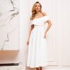 Przedstawiamy naszą elegancką sukienkę midi, która łączy klasyczny styl z nowoczesnymi detalami. Sukienka o kroju off-shoulder odkrywa ramiona, dodając zmysłowości i lekkości, idealnie podkreślając dekolt. Wykonana z wysokiej jakości, miękkiego materiału, zapewnia komfort noszenia przez cały dzień.