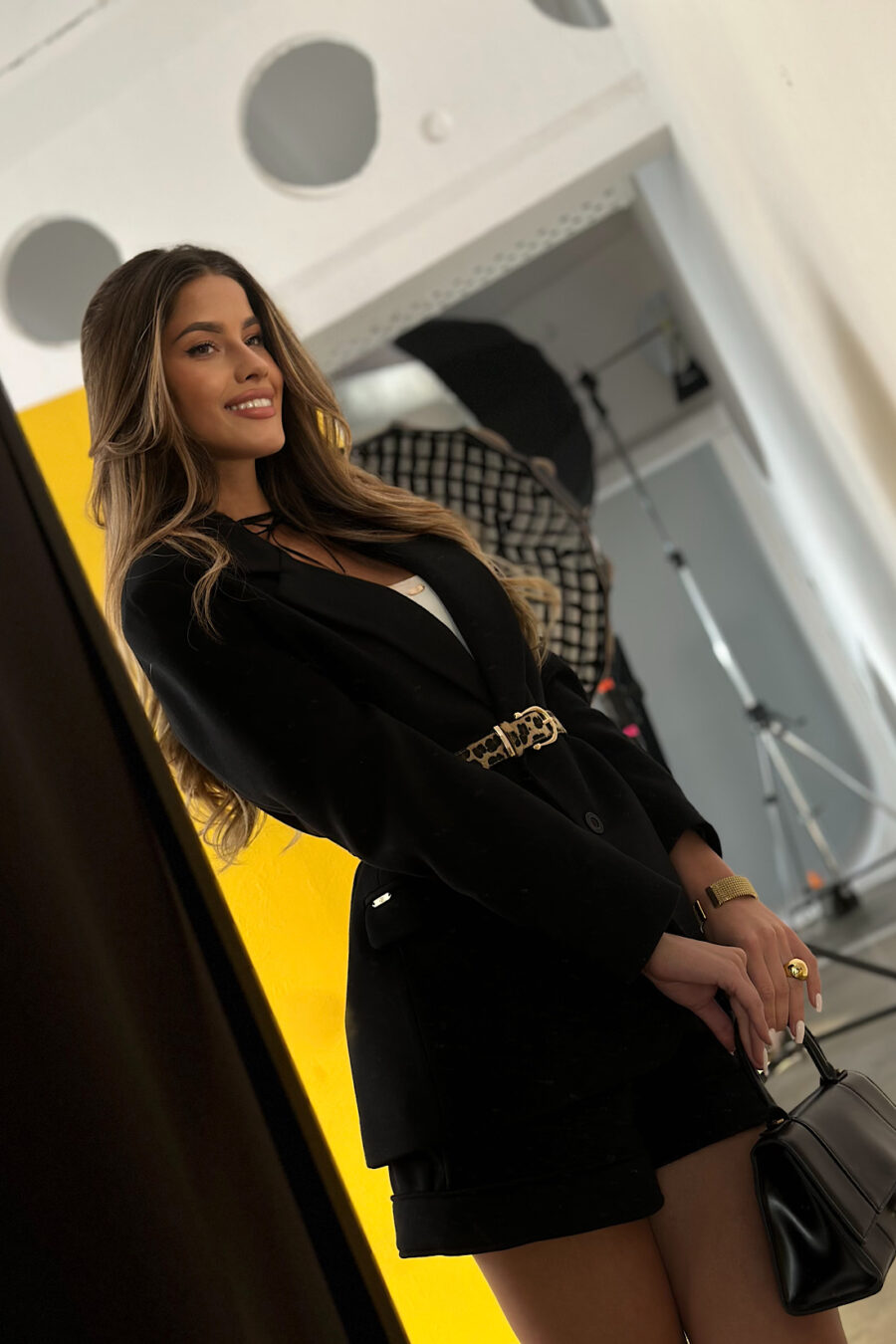 Opis produktu: Marynarka BG DAYLIGHT to esencja elegancji i współczesnego stylu. Wykonana z wysokiej jakości bawełny, charakteryzuje się szerszym krojem, który dodaje swobody i nonszalanckiego szyku. Wyposażona w funkcjonalne kieszenie, z których jedna ozdobiona jest subtelną blaszką z logo marki BG, podkreślającą wyjątkowy charakter projektu. Dzięki podszewce i poduszkom w ramionach marynarka zachowuje idealną formę i doskonałe proporcje. Zapinana na dwa logowane guziki. Nasza marynarka to uniwersalny element garderoby, który sprawdzi się zarówno w codziennych stylizacjach, jak i bardziej formalnych zestawach. Klasa, wygoda, i ponadczasowy design w jednym. Produkt nie zawiera paska.