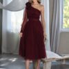 RAMONA Sukienka z Cekinowym Rękawem Bordowy