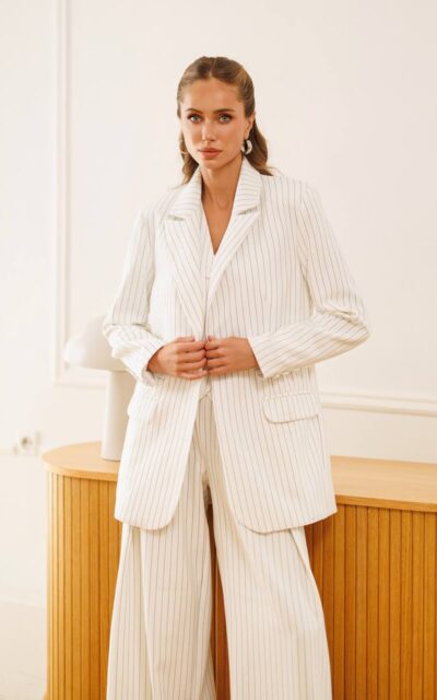 ADELINE Garnitur Damski Trzyczęściowy w Paski C463 Ecru