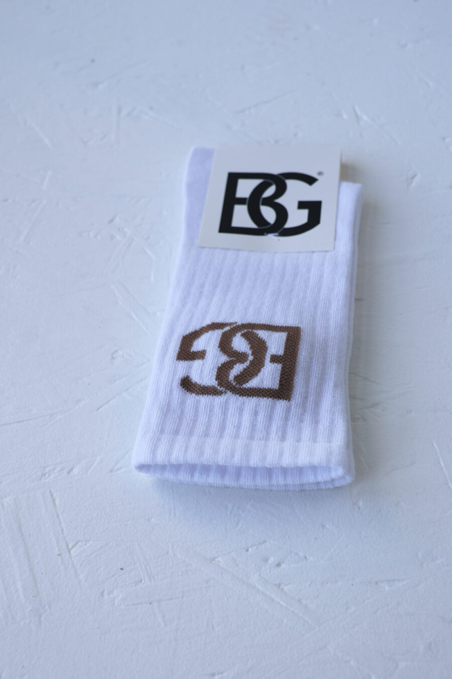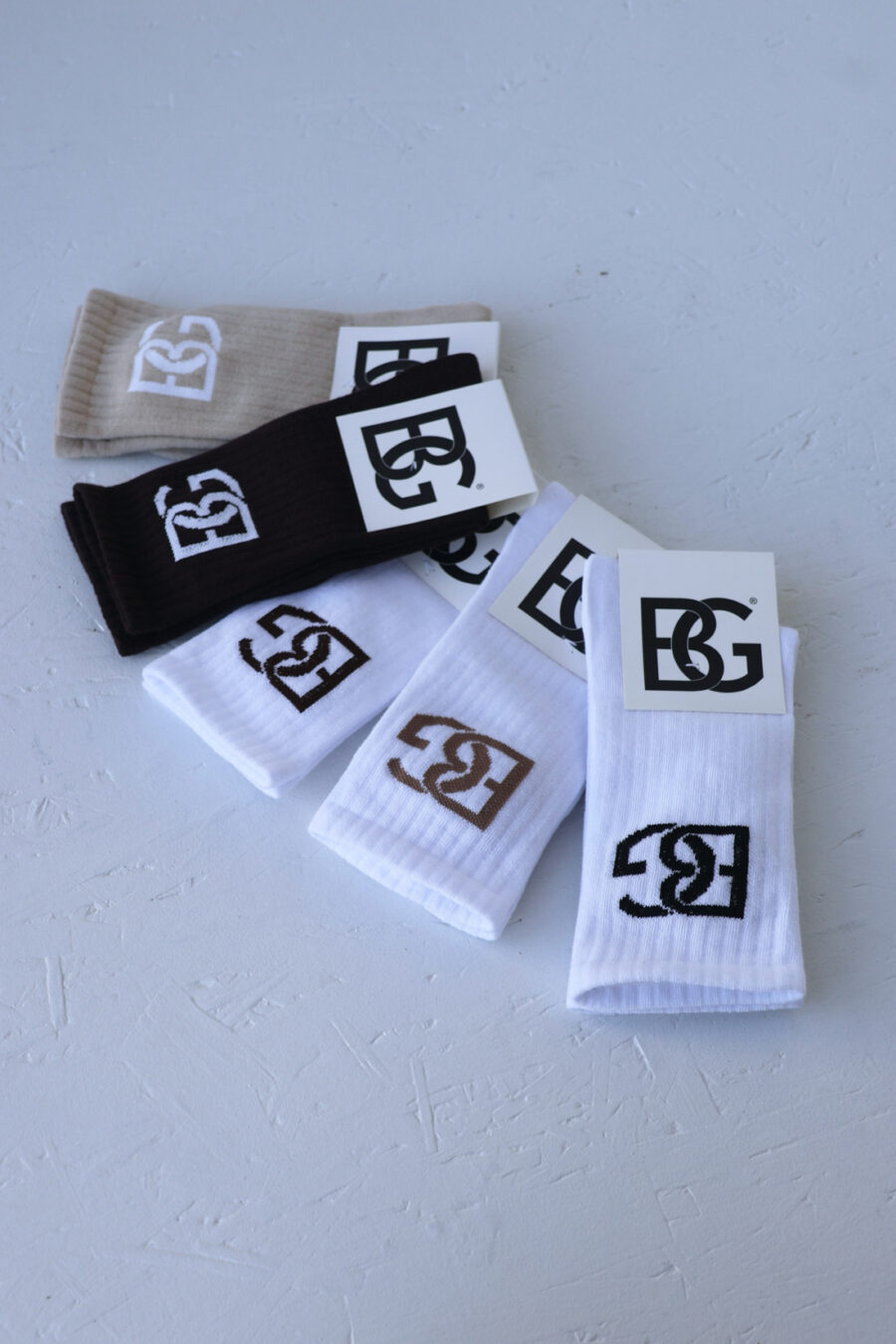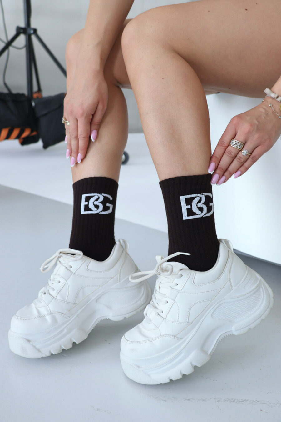 Opis produktu: Bawełniane skarpety BG LOGIN z logowaniem marki BG. Na spodzie skarpet napis BRANDENBURG COUTURE.