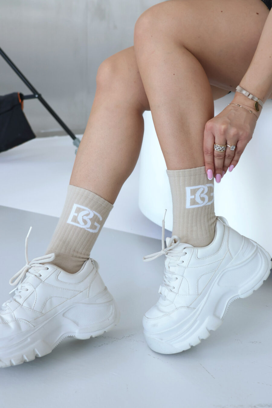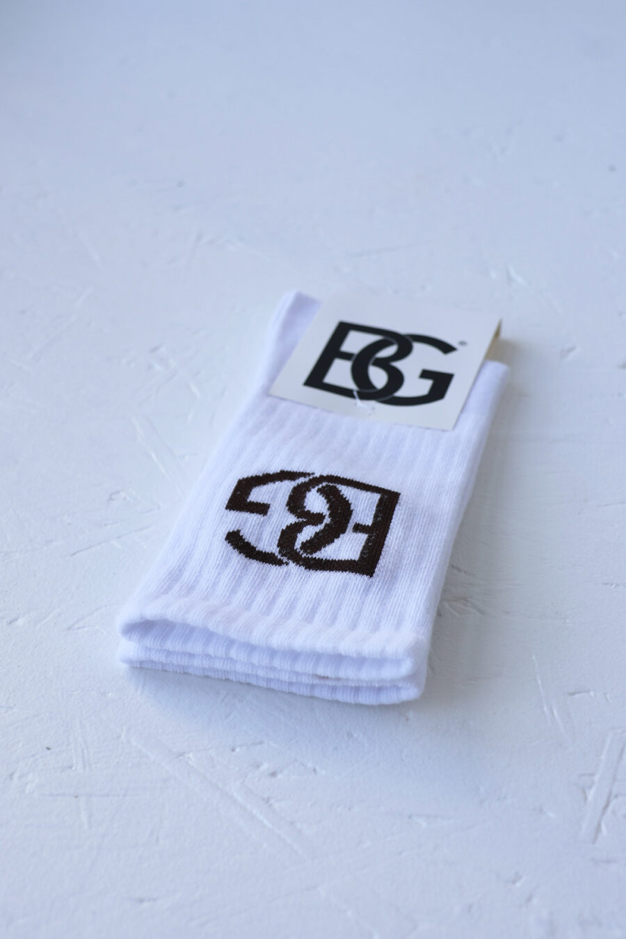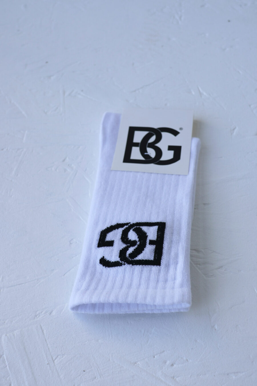 Opis produktu: Bawełniane skarpety BG LOGIN z logowaniem marki BG. Na spodzie skarpet napis BRANDENBURG COUTURE.