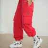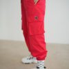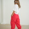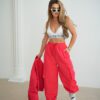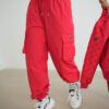 Opis produktu: Spodnie z szelestu o szerszym kroju. Spodnie kroju bojówek posiadają kieszenie boczne. Logo żelowe marką BG na patce kieszeni. Sznurek w pasie. Stylizacja na sezon jesień/zima. Modelka ma na sobie rozmiar S.