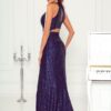Ekskluzywna suknia maxi z rozcięciem i odkrytymi ramionami wykonana z najwyższej jakości materiału zdobionego cekinami. Błyszcz jak diament.