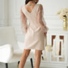Zjawiskowa kreacja z dwoma cekinowymi rękawami. Dekolt delikatny w kształcie serka, lekko eksponuje biust. Dół sukienki przekładany Uroku i szyku dodają cekinowe rękawy, które są idealnym dodatkiem do kreacji. Dostępna w prześlicznych kolorach.