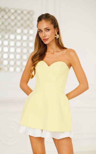 VIOLLA Sukienka Mini C509 Gorset + Spódnica Żółty