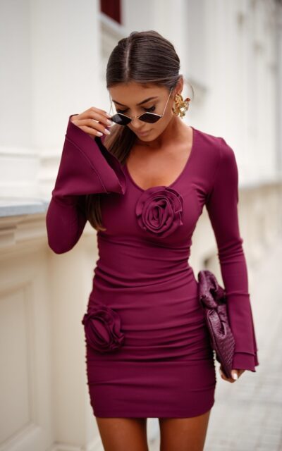 IZZY Sukienka Mini z wiązanym Szalem Bordowy