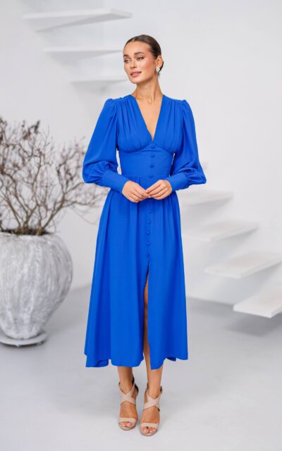 DIANA Sukienka z Długim Rękawem Midi C392 Błękitny