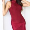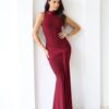Prosty krój, eleganckie wykończenie i detal, który przyciąga uwagę.Synthia to klasyczna sukienka maxi w odcieniu bordo. Zabudowana góra z wysoką stójką typu golf delikatnie otula szyję i nadaje stylizacji eleganckiego charakteru. Krój sukienki jest prosty i dopasowany – subtelnie podkreśla figurę bez nadmiernego opięcia. Z boku sukienki wszyty został długi szal z tego samego materiału, który można zawiązać na biodrach. To rozwiązanie pozwala na delikatne urozmaicenie całości – szal możesz puścić luźno, zawiązać w kokardę z boku albo raz przewiązać dla uzyskania bardziej dopasowanego efektu. Stylizujesz ją tak, jak lubisz. Dlaczego warto?• zabudowana góra z eleganckim golfem – szykowna i wygodna• dopasowany fason maxi – kobiecy, ale nienachalny• wszyty szal – możliwość stylizacji na kilka sposobów• podwójny materiał – nie prześwituje i lepiej się układa• miękka, lekko elastyczna tkanina – komfortowa w noszeniu• idealna na przyjęcia, ważne okazje, randki lub stylizacje wieczorowe