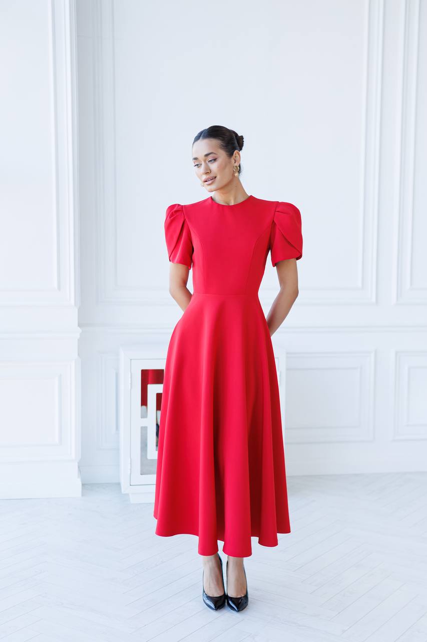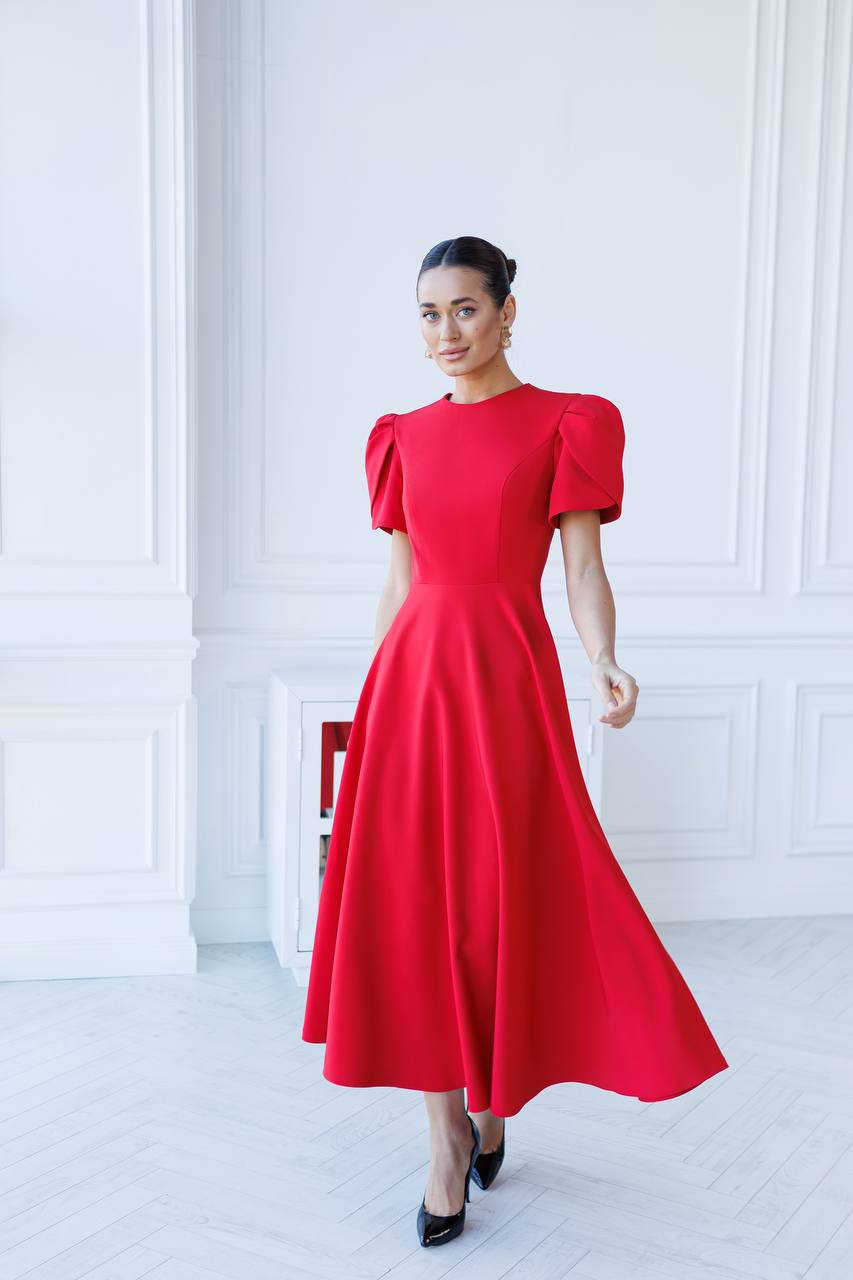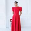 YASMINE Sukienka Midi z Bufkami C512 Czerwony